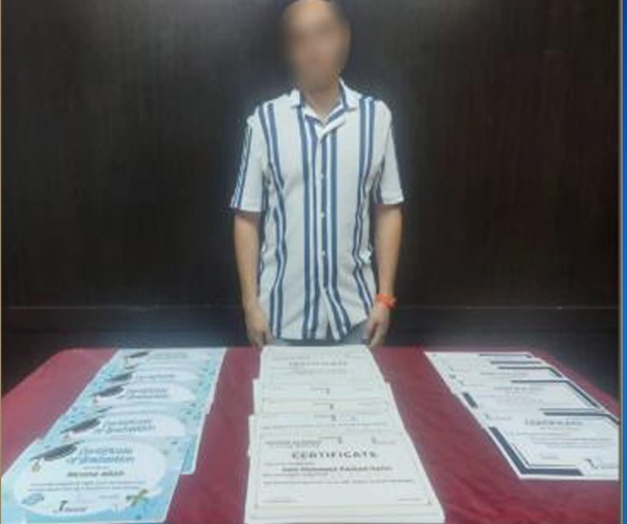 عقب تقنين الإجراءات، تم استهداف المقر المشار إليه، حيث تمكنت الأجهزة الأمنية من ضبط المدير المسئول عن الكيان، وبحوزته عدد من الشهادات المزيفة المنسوب صدورها للكيان الوهمي، كان يروجها للمواطنين باعتبارها شهادات معتمدة.
