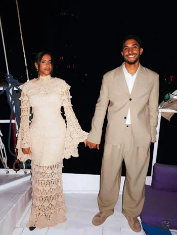 وظهر مرموش برفقة خطيبته في جلسة تصوير رومانسية فريدة من نوعها، تميزت بالبساطة والأجواء الكلاسيكية.