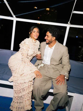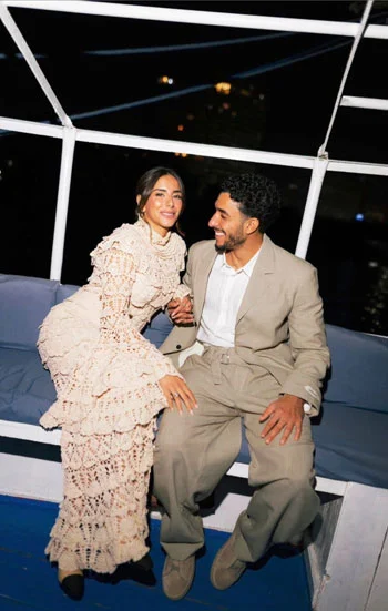 اختار الثنائي خلفية نهر النيل العظيم لإتمام جلسة التصوير، حيث ظهرا على متن فلوكة هادئة في أجواء رومانسية لافتة.