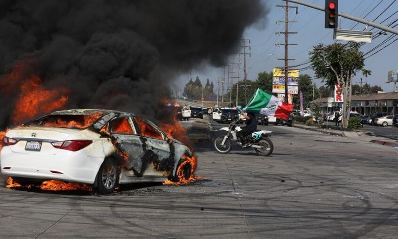وتشهد المدينة التابعة لولاية كاليفورنيا خلال الأيام الأخيرة على التوالي اضطرابات كبيرة، إذ اشتبك سكان منطقة ذات أغلبية لاتينية مع عملاء فيدراليين من إدارة الهجرة والجمارك. واستخدمت الشرطة الغاز المسيل للدموع والهراوات لتفريق الحشود في منطقة باراماونت.