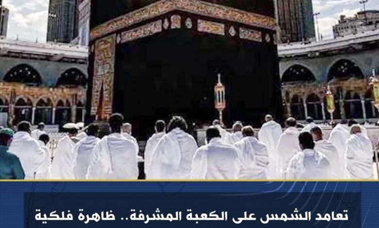 تشهد سماء مكة المكرمة على مدى يومين غدًا وبعد غد واحدة من أجمل وأدق الظواهر الفلكية المتكررة سنويًا، وهي ظاهرة تعامد الشمس على الكعبة المشرفة، حيث تصبح الشمس في موقع شبه عمودي فوق الكعبة فتصل أشعتها مباشرة إلى سطحها دون أن تلقي الأجسام العمودية أي ظل في مشهد فلكي فريد يعبر عن دقة النظام الكوني.