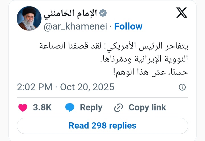 خامنئي: اعتقاد ترامب أنه دمّر المنشآت النووية الإيرانية “وهم”