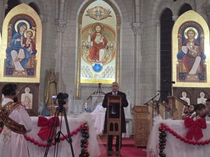 وفي كلمة ألقاها خلال الإحتفال بعيد الميلاد، رحب السفير طارق دحروج بمشاركته مع الأخوة الأقباط إحتفالاتهم بدعوة كريمة من نيافة الأنبا مارك.