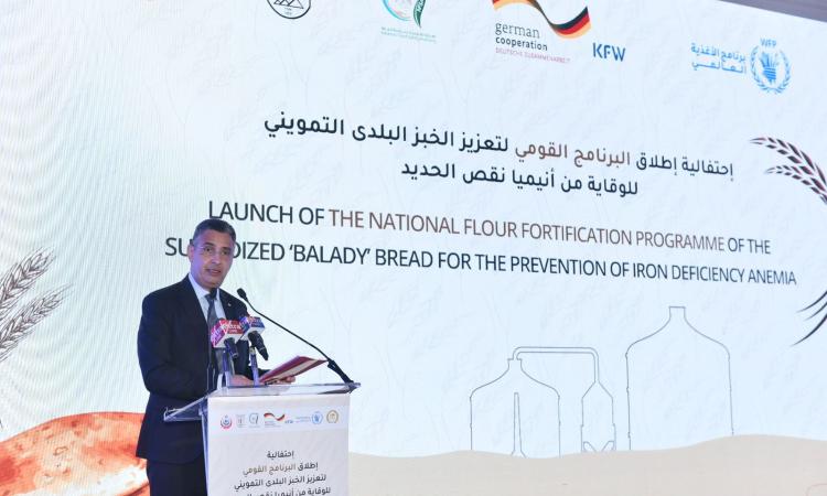 أطلقت وزارة التموين والتجارة الداخلية، بالتعاون مع برنامج الأغذية العالمي ووزارة الصحة والسكان والمعهد القومي للتغذية، البرنامج القومي لتعزيز الخبز البلدي المدعم بعنصري الحديد وحمض الفوليك للوقاية من أنيميا نقص الحديد.