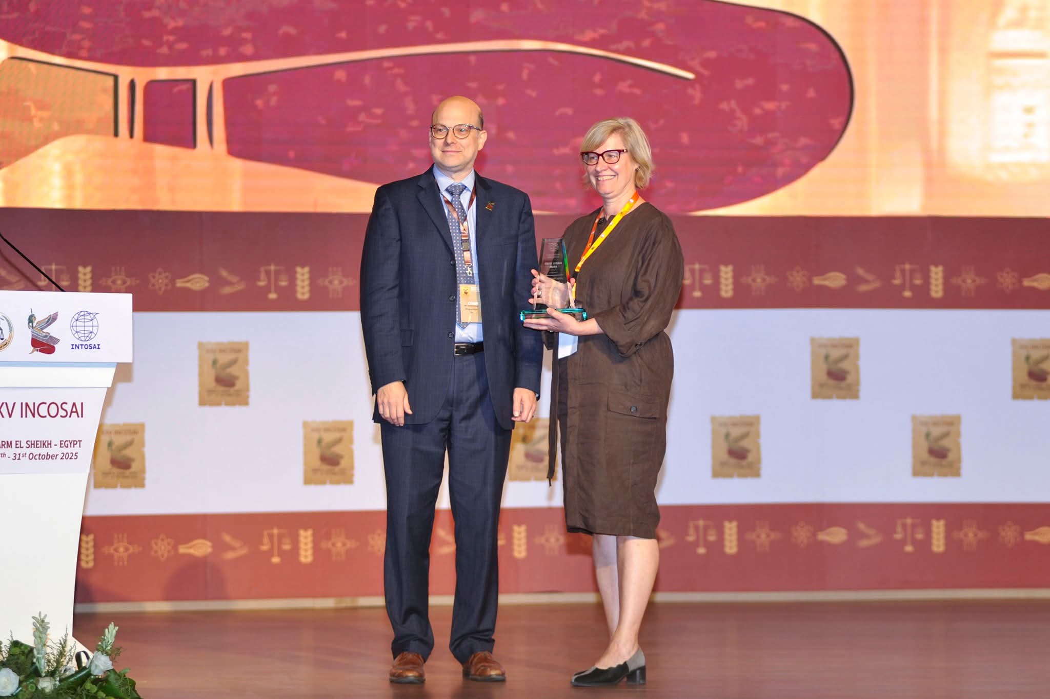 شهدت الجلسة الختامية للمؤتمر الخامس والعشرين للمنظمة الدولية للأجهزة العليا للرقابة المالية والمحاسبة (الإنتوساي)، والتي استضافتها جمهورية مصر العربية بمدينة شرم الشيخ، تحت رعاية الرئيس عبد الفتاح السيسي، رئيس الجمهورية، لحظة احتفاء عالمية بتوزيع جوائز الإنتوساي السنوية التي تُجسد روح التميز والابتكار في العمل الرقابي، وتكرّم المبادرات التي تسهم في بناء مستقبل أكثر شفافية وكفاءة.