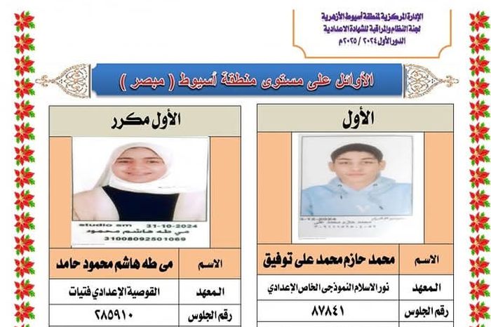 إعلان أسماء أوائل الشهادة الإعدادية الأزهرية في أسيوط للعام الدراسي 2024/2025
