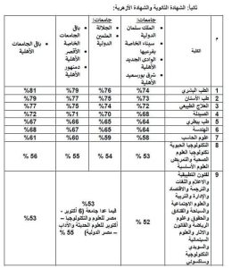 وأضاف المتحدث الرسمي أن الاجتماع المشترك لمجلسي الجامعات الخاصة والأهلية انتهى إلى تحديد الحدود الدنيا للتقدم للكليات بالجامعات الخاصة والأهلية ، وذلك لطلاب شهادة الثانوية العامة وما يعادلها من شهادات عربية وأجنبية لعام الجامعي 2025/2026، وجاءت على النحو التالي كما موضح في الجدول: