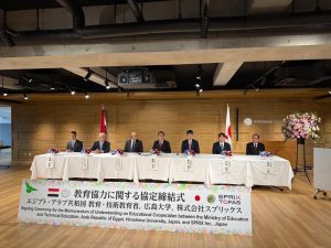 وقد وقّع الاتفاق من جانب جامعة هيروشيما الحكومية اليابانية ميتسو أوتشي، رئيس الجامعة، ومن جانب مؤسسة “سبريكس” تسوني إيشي، الرئيس التنفيذي للمؤسسة، وذلك بحضور الدكتور هاني هلال، الأمين العام للشراكة المصرية اليابانية للتعليم.