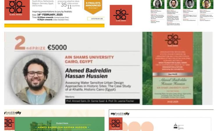وجاء هذا التكريم عن أطروحته المتميزة “تقييم تدخلات التصميم الحضري المراعية لندرة المياه في المواقع التاريخية: منطقة الخليفة بالقاهرة التاريخية كدراسة حالة” والتي سلطت الضوء على استراتيجيات مبتكرة للحفاظ على المياه في النسيج العمراني التراثي.