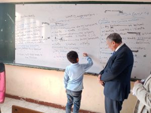 حيث قام بمتابعة الفصول الدراسية بمراحلها المختلفة وقام بجولة داخل قاعات رياض الأطفال وناقش التلاميذ للوقوف على مستواهم العلمى وقام بمتابعة سير العملية التعليمية و تشجيع الطلاب على الجد والإجتهاد وإطمأن على تفاعلهم مع المعلمين ومطابقة قوائم الفصول للتعليمات الوزارية المتعلقة بتخفيض الكثافة الطلابية وكذا جاهزية المدرسة وتوافر كافة الخدمات والأدوات المساعدة والمعامل بها٠
