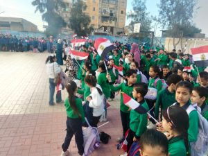 و شهدت المدارس خلال طابور الصباح وتحية العلم مظاهر عكست قيم الولاء والإنتماء وتعزيز حب الوطن فى نفوس الطلاب وتضمن طابور الصباح فقرات إذاعية متميزة حول إنتصارات أكتوبر وفقرات شعرية وطنية وعروض فنية عبرت عن الفخر بالإنتصار العظيم٠