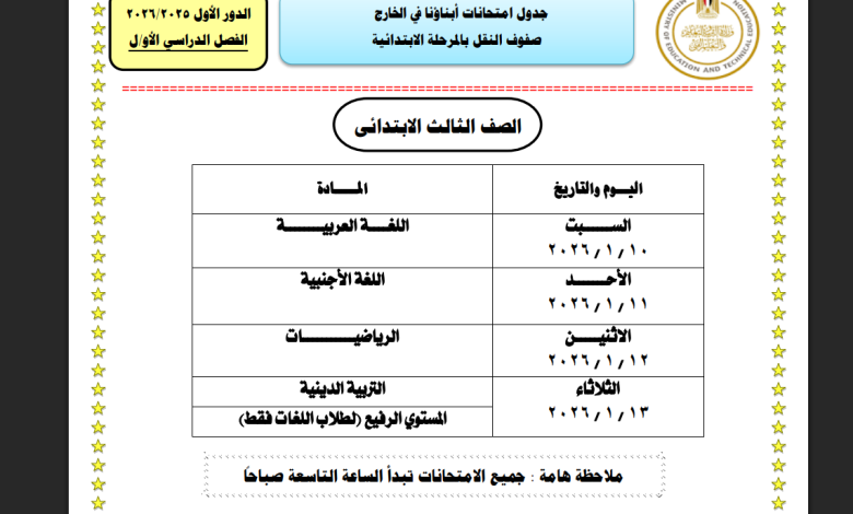 جدول امتحانات أبناؤنا في الخارج للعام الدراسي 2026 رسميًا لجميع المراحل التعليمية