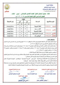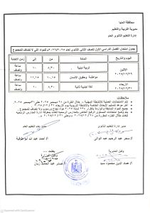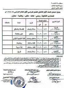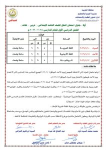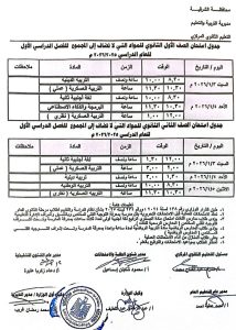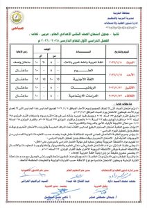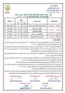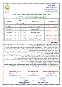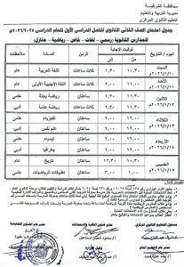 تتولى كل مديرية تربية وتعليم بشكل منفرد إعداد واعتماد جدول الامتحانات الخاص بها، يتم نشر الجدول رسميًا على الصفحة الرسمية لكل مديرية على موقع فيسبوك، وذلك بعد اعتماده من المحافظ المختص.