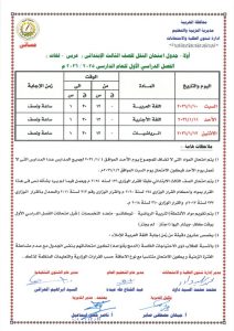 الصفين الأول والثاني الابتدائي: يقتصر أداء التقييمات على مواد محددة فقط، وهي: اللغة العربية – اللغة الأجنبية – الرياضيات.