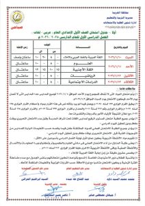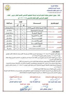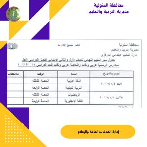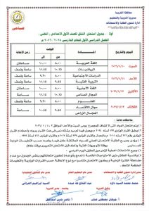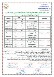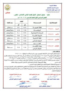 من المهم التنويه بأن جدول امتحانات نصف العام 2026 لجميع المراحل (صفوف النقل والشهادة الإعدادية) ليس موحدًا على مستوى الجمهورية.