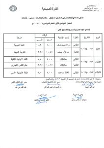 - امتحانات المستوى الرفيع: يُعقد امتحان المستوى الرفيع (اللغة الأجنبية) بمعرفة المدرسة وتحت إشراف التوجيه الفني.