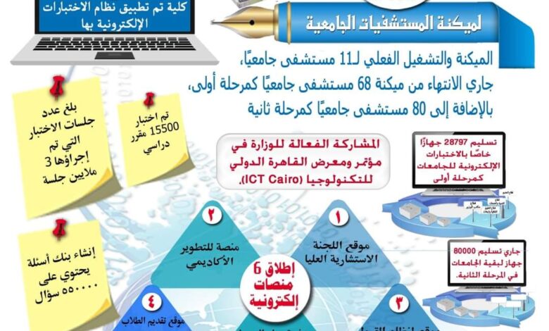 ميكنة المستشفيات الجامعية بـ 5 مليارات جنيه..وإطلاق 6 منصات إلكترونية