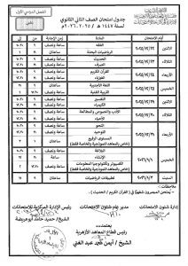 وأوضح فضيلة الشيخ حميد سالمان ابو عريضة، رئيس الإدارة المركزية للامتحانات أن اعتماد الجداول يأتي في إطار حرصه على إحكام الاستعدادات للامتحانات داخل جميع المعاهد، وتوفير الوقت الكافي للطلاب والمعلمين للتجهيز الجيد، مشيرًا إلى أن المناطق الأزهرية بدأت بالفعل في تعميم الجداول على مختلف الإدارات والمعاهد لضمان جاهزية اللجان وتوفير بيئة امتحانية آمنة ومنضبطة.