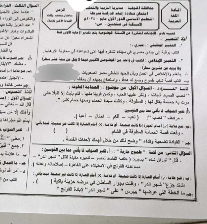قرار عاجل من تعليم المنوفية بعد تداول ورقة أسئلة امتحان اللغة العربية علي جروبات الغش