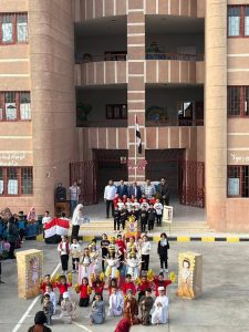 حيث رفع الطلاب الأعلام المصرية فى الطابور الصباحي وخصصت إدارة المدارس الإذاعة المدرسية اليوم للإحتفال بهذة المناسبة التاريخية وتم تقديم فقرات متنوعة