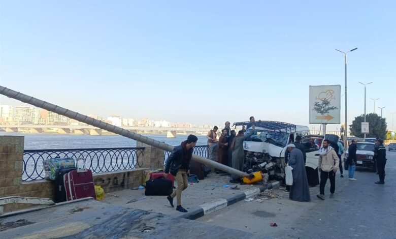 أصيب خمسة طلاب في حادث سير وقع صباح اليوم بمدينة سوهاج، إثر اصطدام سيارة ميكروباص بعمود إنارة وسور الكورنيش الشرقي بحي شرق.