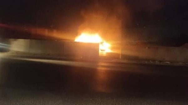 احتراق سيارة محملة بمبالغ مالية ضخمة على الطريق الصحراوي بسوهاج