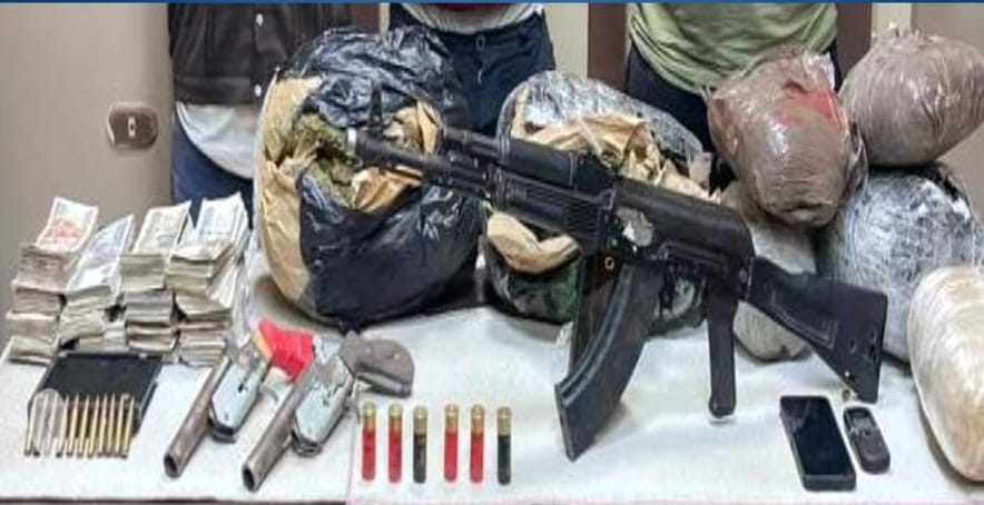 وضبطت الأجهزة الأمنية بحوزتهم كمية من مخدر البانجو وزنت 20 كيلو جرام – بندقية آلية – 2 فرد محلى – عدد من الطلقات مختلفة الأعيرة – مبلغ مالى).. وبمواجهتهم إعترفوا بحيازتهم للمواد المخدرة بقصد الإتجار والسلاح النارى لحماية نشاطهم الإجرامى والمبلغ المالى من حصيلة نشاطهم الإجرامى.