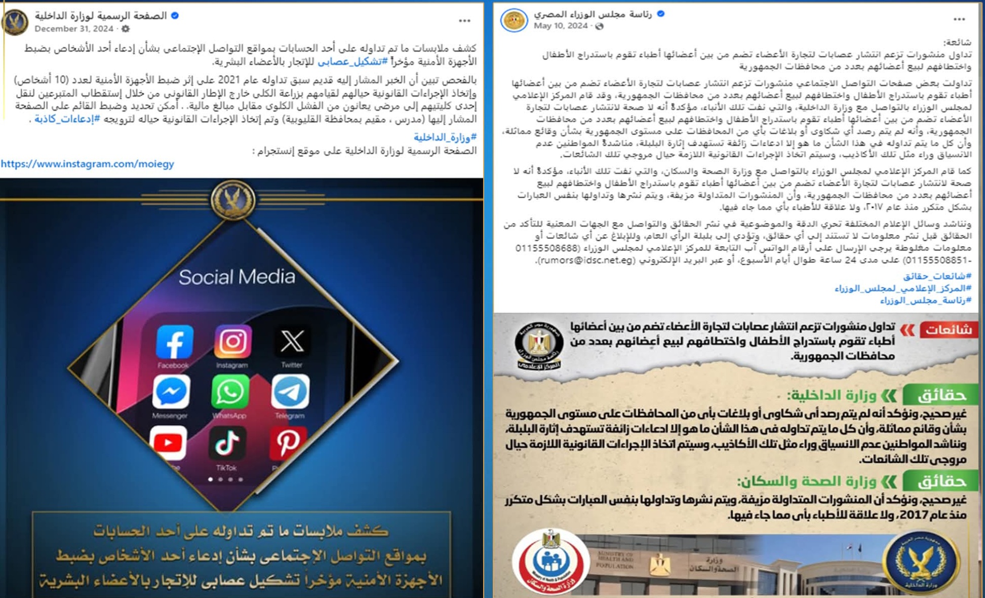 في إطار جهود وزارة الداخلية لملاحقة مروّجي الشائعات ومكافحة الأخبار المضللة على مواقع التواصل الاجتماعي، كشفت الأجهزة الأمنية حقيقة ما تم تداوله على إحدى الصفحات بشأن ضبط تشكيل عصابي يضم عددًا من الأطباء بتخصصي الجراحة والتخدير، بزعم تورطهم في الإتجار بالأعضاء البشرية وبحوزتهم 75 طفلًا بمحافظة الغربية.