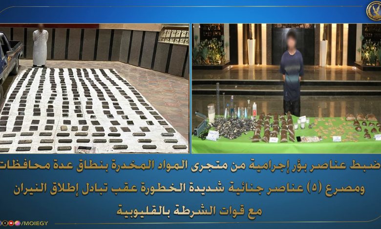 عقب تقنين الإجراءات تم إستهدافهم بالتنسيق مع قطاع الأمن المركزى ، وقد أسفر التعامل عن مصرع (5 عناصر جنائية شديدة الخطورة بالقليوبية) وضبط باقى عناصر تلك البؤر وبحوزتهم (أكثر من 551 كيلو جرام من المواد المخدرة المتنوعة “حشيش، هيدرو ، إستروكس،