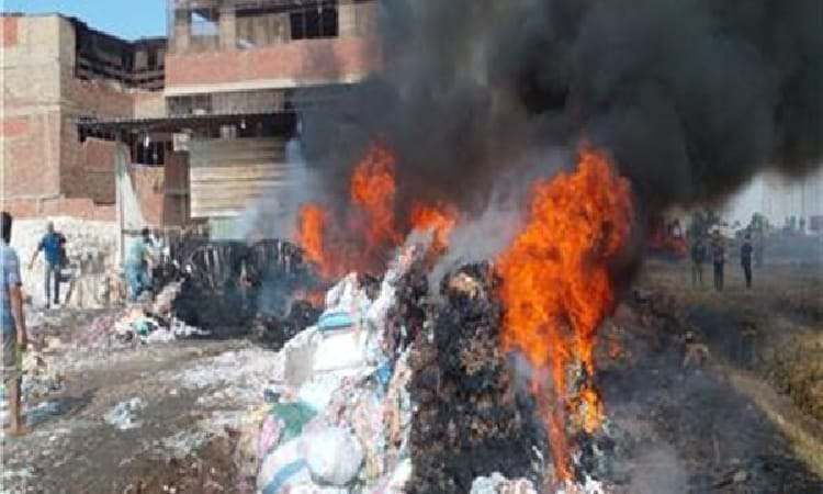 وتبين من الفحص أن الحريق نشب في عدد من بالات القطن المخزنة في أرض فضاء خلف المصنع والمملوك لأحد المواطنين بقرية الراهبين.