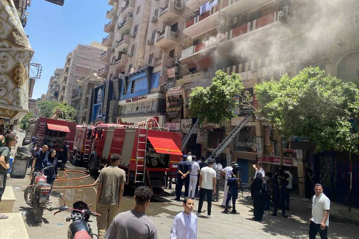 حريق ضخم داخل محل تجاري ببرج سكني في المنيا
