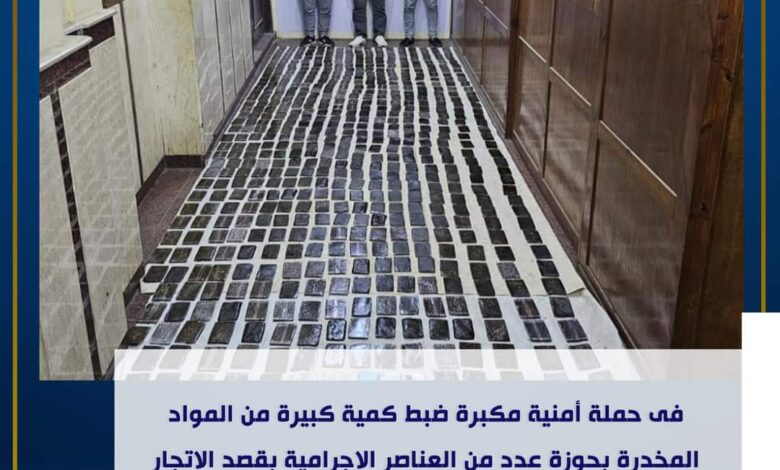 كما تم ضبط عاطلَين “لأحدهما معلومات جنائية” بدائرة قسم شرطة الصالحية الجديدة بالشرقية.. وبحوزتهما 500 طربة لمخدر الحشيش وزنت 50 كيلو جرام ومبلغ مالى من متحصلات نشاطهما الإجرامى.