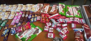 وشملت المضبوطات 28 قطعة باتية، و67 قطعة عسلية بالشوكولاتة، و24 قطعة نوجا بالسمسم، و4 أكياس شيبسي، و2 كيس مقرمشات، و35 باكو بسكويت ويفر، و10 قطع ريتو فول سوداني بالكريسب والكراميل، و5 قطع كوفرتينا ويفر، و7 قطع نوجا بالفول السوداني، و15 عبوة كانز ستينج، و1.5 كجم لب قرع أبيض، و2.5 كجم فول سوداني مقشر، و35 عبوة عصير بلاستيك مشروب صناعي مانجو، بالإضافة إلى جردلين صغيري الحجم من التوابل المتنوعة، وجميعها غير صالحة للاستهلاك الآدمي وتشكل خطرًا مباشرًا على صحة المواطنين.