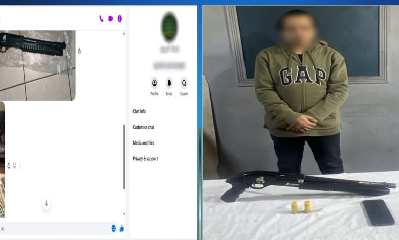 وبالفحص، أمكن تحديد وضبط القائم على إدارة الصفحة المشار إليها، وتبين أنه عامل ومقيم بدائرة مركز شرطة أبو النمرس بالجيزة، وعُثر بحوزته على بندقية خرطوش المعروضة للبيع، إلى جانب هاتف محمول، وبفحصه تبين احتواؤه على دلائل تؤكد نشاطه الإجرامي، مع عدم حيازته لأي أسلحة أخرى.