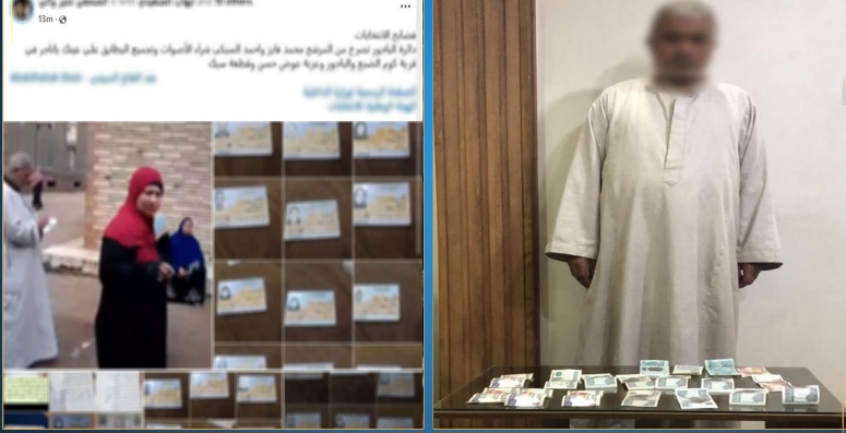 تمكنت أجهزة الأمن بمركز الباجور بالمنوفية من ضبط أحد الأشخاص الظاهر في مقطع فيديو متداول على مواقع التواصل الاجتماعي، والذي كان يجمع بطاقات شخصية للمواطنين تمهيدًا لتوزيع مبالغ مالية عليهم لدفعهم للإدلاء بأصواتهم لصالح أحد المرشحين.