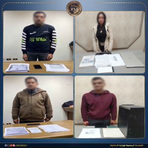 عقب تقنين الإجراءات أمكن ضبط القائمين على إدارة تلك الشركات (16 شخص) وبحوزتهم (جوازات سفر للمواطنين وصور ضوئية منها عدد من أجهزة الكمبيوتر وهواتف المحمول “بفحصهم تبين إحتوائهم على أدلة تؤكد نشاطهم الإجرامى” – عقود عمل وإتفاق – طلبات توظيف – أكلاشيهات – إعلانات خاصة بالشركات – دفاتر بيانات راغبى السفر للعمل بالخارج- مبالغ مالية متحصلة من نشاطهم الإجرامى).