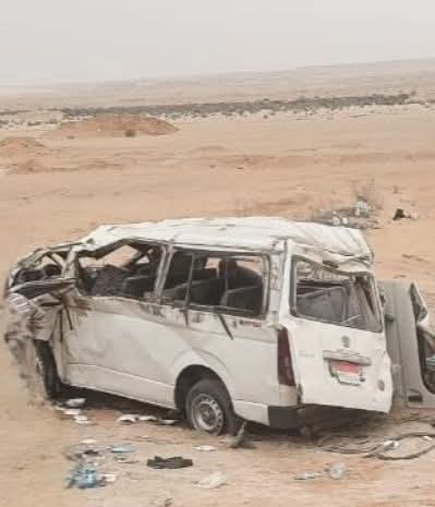 لقى شخص مصرعه وأصيب 13 أخرين في حادث إنقلاب سيارة ميكروباص بطريق جنيفة ، والممتد من محافظة السويس إلى شمال شرق القاهرة، .