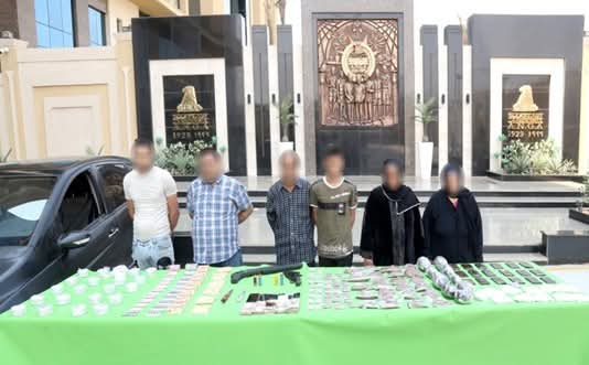 وضبط بحوزة المتهمين أكثر من 63 كيلو جراما من المواد المخدرة المتنوعة “شادو، هيدرو، آيس، هيروين، بودر، حشيش”، و2100 قرص مخدر، و5 قطع أسلحة نارية “بندقيتان آلي، بندقية خرطوش، فرد خرطوش، طبنجة”.