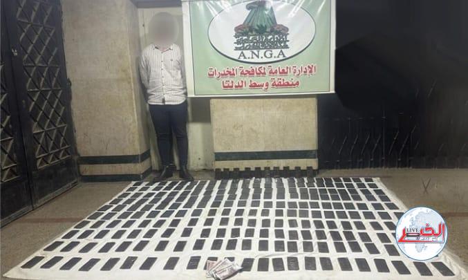 عقب تقنين الإجراءات تم ضبطه حال تواجده بدائرة المركز.. وبحوزته (240 طربة لمخدر الحشيش وزنت 24 كيلو جرام).