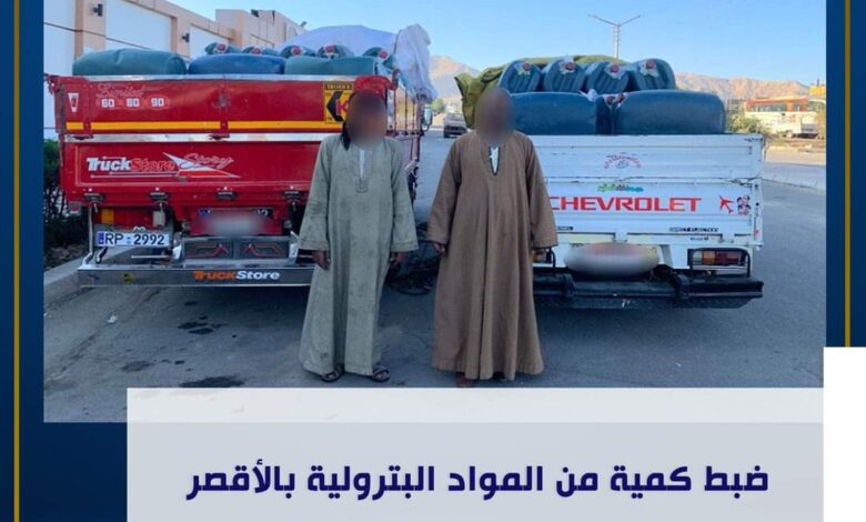 تمكن قطاع الأمن العام بمشاركة إدارة البحث الجنائى بمديرية أمن الأقصر من ضبط (سائقَين “لأحدهما معلومات جنائية” مقيمان بدائرة مركز شرطة إسنا) أثناء قيادتهما سيارتى نقل ” بدون رخص القيادة والتسيير” ومحمل عليهما (79 جركن تحوى 5135 لتر بنزين- 101 جركن تحوى 6565 لتر سولار).. بدون أوراق أو فواتير.