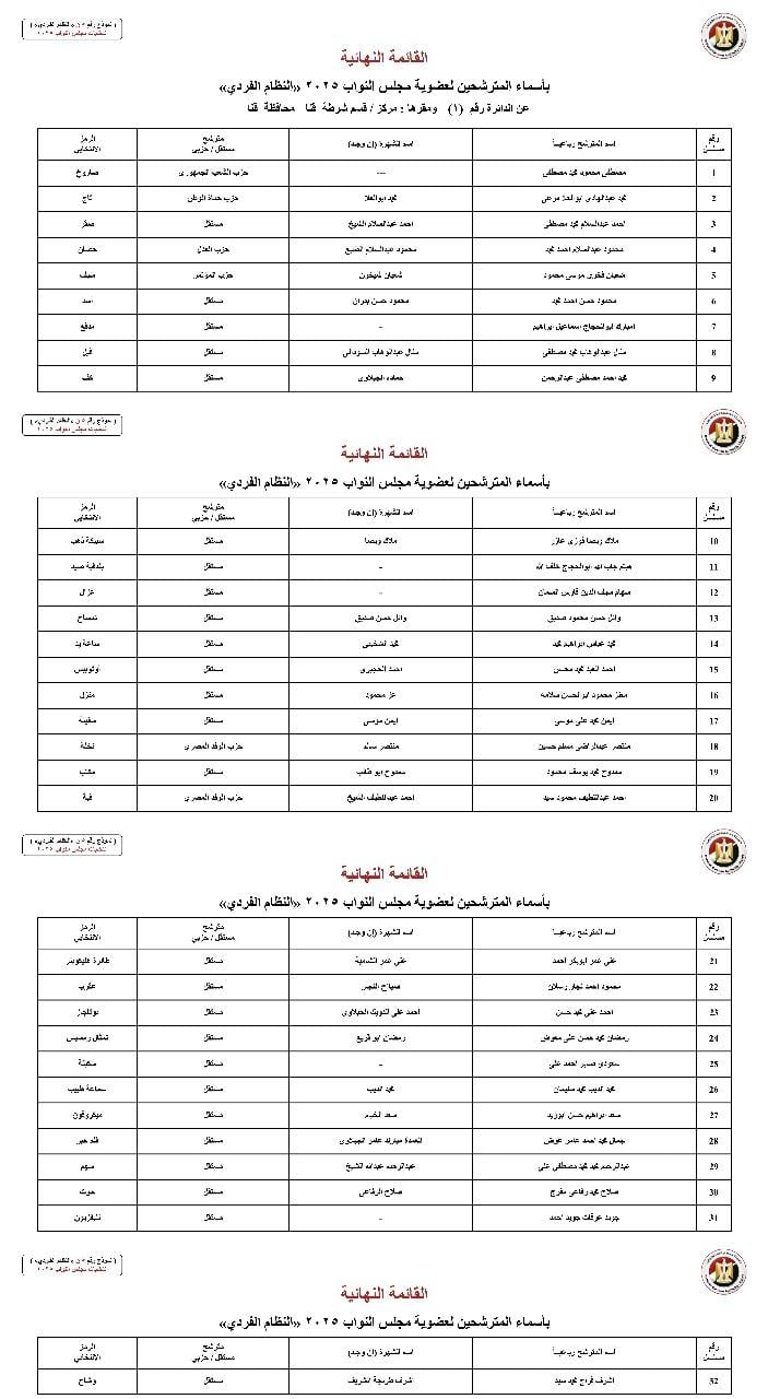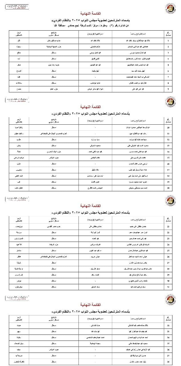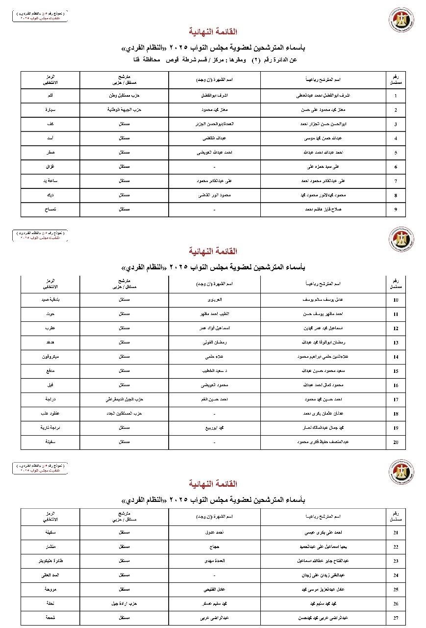 أسماء المترشحين النهائية في محافظة قنا عن النظام الفردي بمجلس النواب