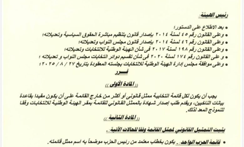 أعلنت الهيئة الوطنية للانتخابات الشروط الواجب توافرها فى ممثل القائمة بانتخابات مجلس النواب 2025 وفقا لما جاء في الكشوف التالية