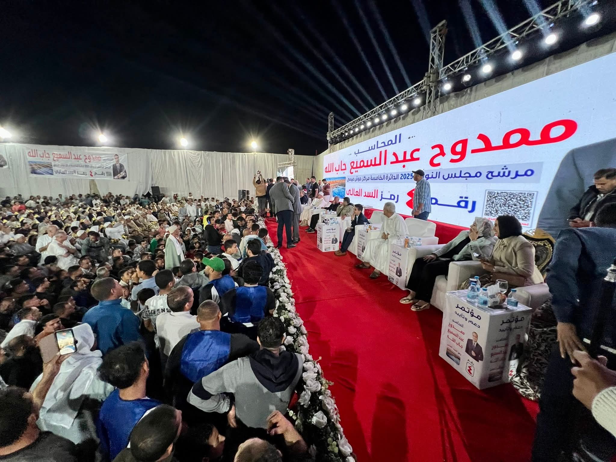 قال المحاسب ممدوح جاب الله، مرشح الدائرة الخامسة ومقرها حوش عيسى، رمز السد العالي رقم (4): ” حضوركم هذا وسام على صدري، وأنا ابنكم، وشرفتوني ونورتوني، فأنتم السند والدعم لي، ولن أنسى هذا الموقف الكريم.”.
