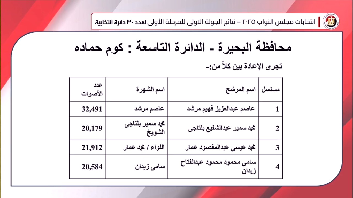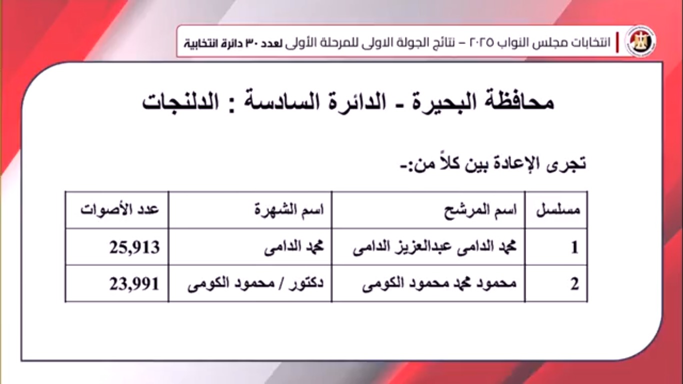 نتيجة انتخابات مجلس النواب 2025 في الدوائر الملغاة بمحافظة البحيرة