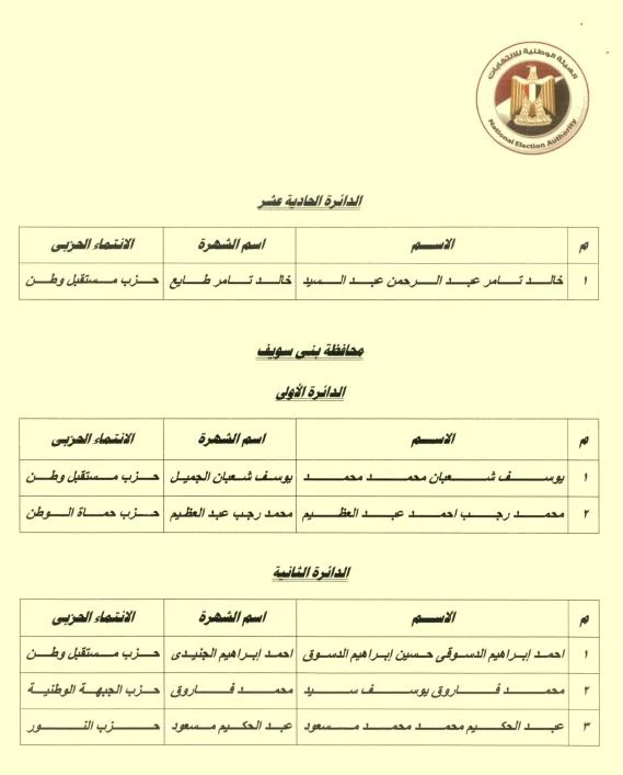 ننشر أسماء الفائزين في المرحلة الأولى بانتخابات مجلس النواب 2025