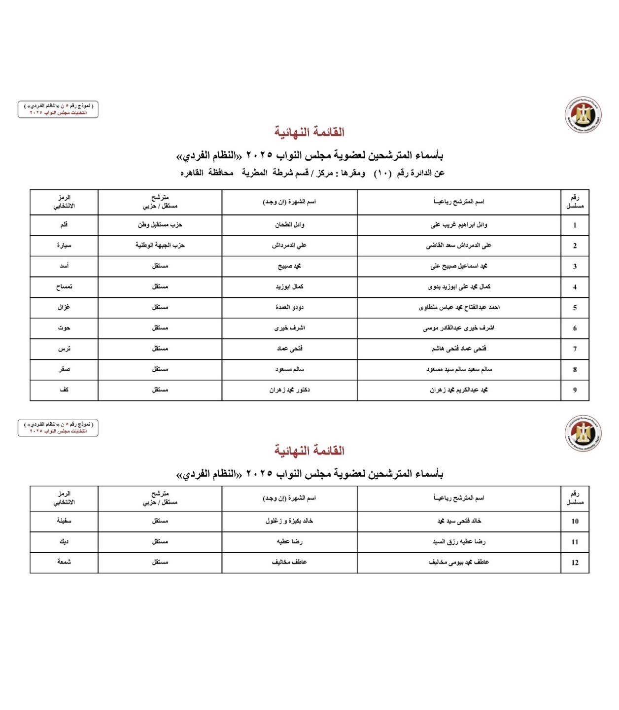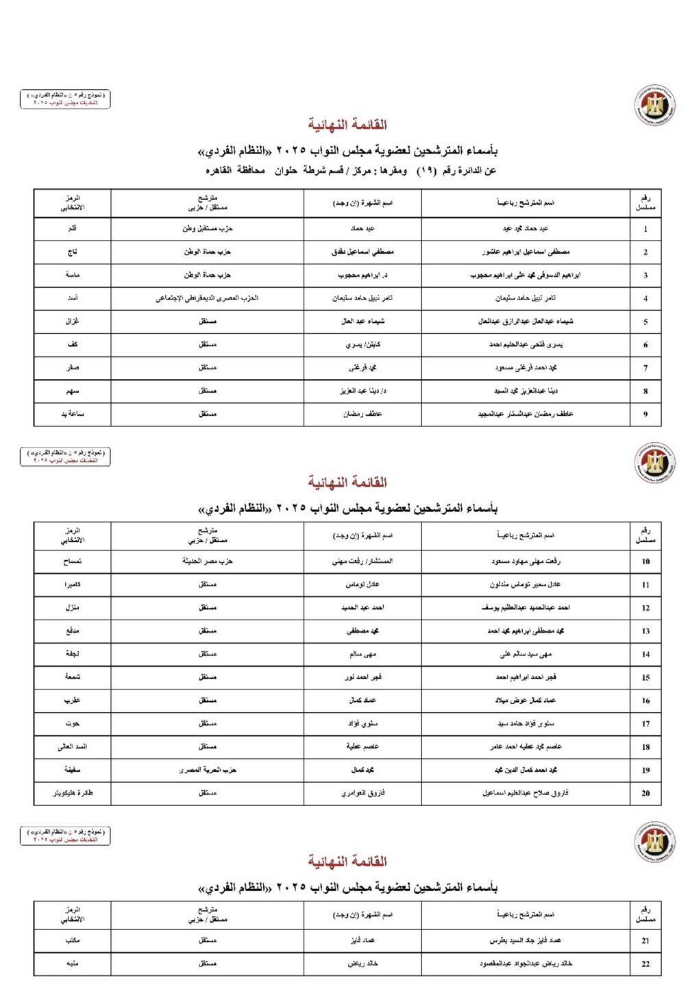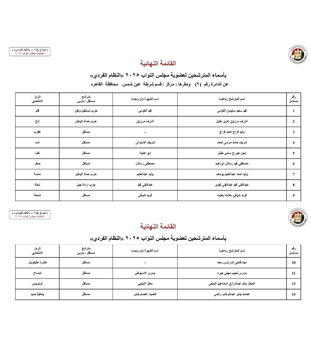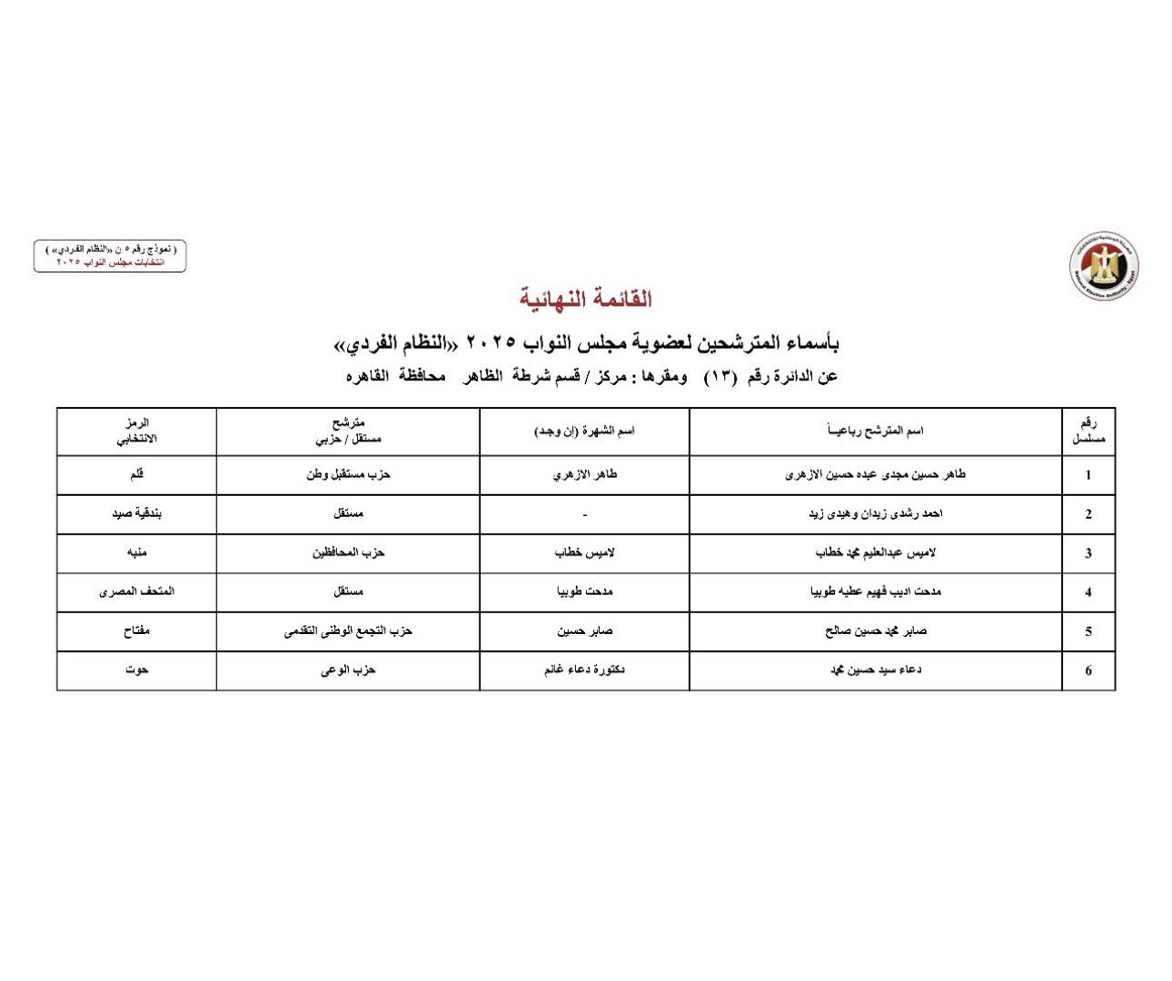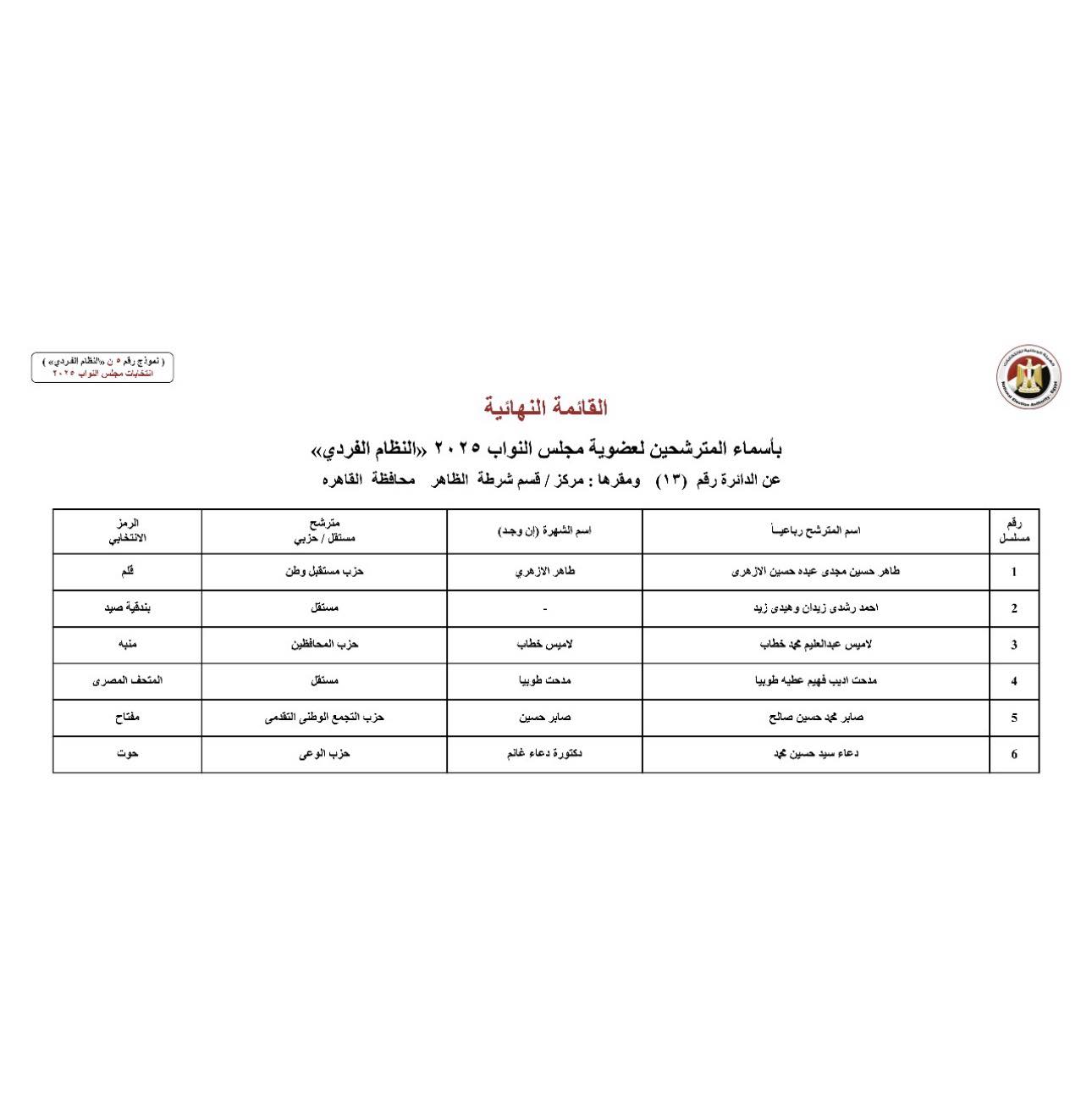 ننشر أسماء المترشحين النهائية بمحافظة القاهرة في انتخابات مجلس النواب 2025