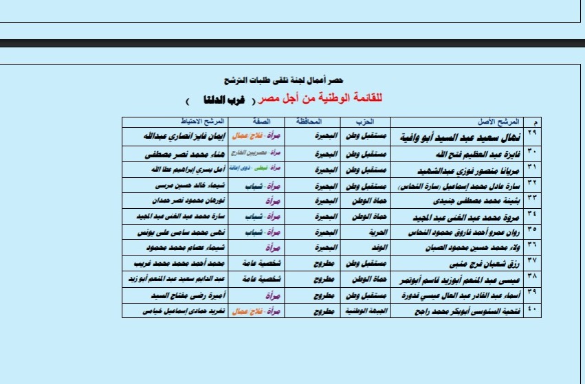ننفرد بنشر أسماء مرشحي القائمة الوطنية بقطاع غرب الدلتا في انتخابات النواب