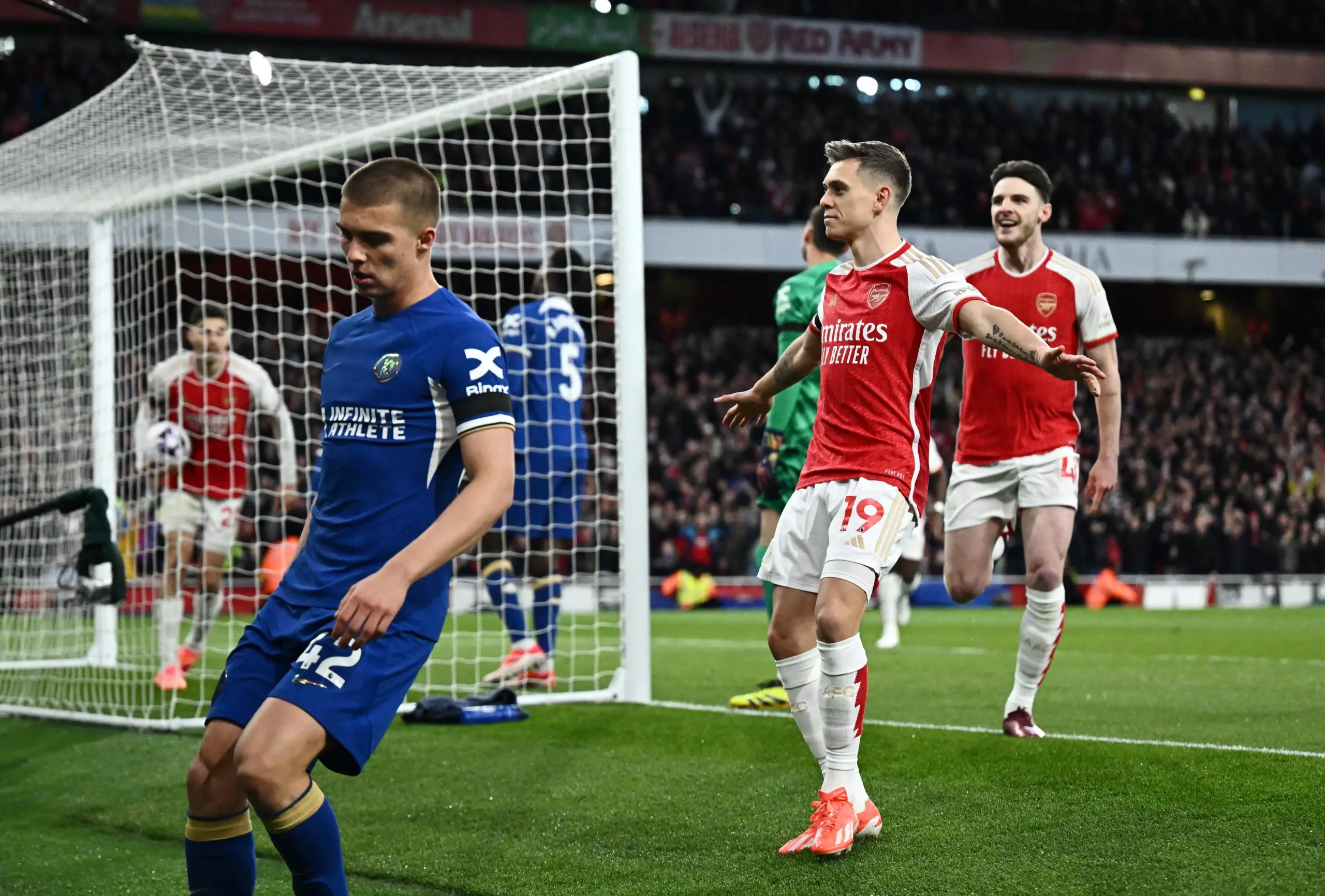 وسجل تروسارد هدف التقدم في الدقيقة الرابعة، وأضاف بن وايت هدفين في الدقائق 53 و57، بينما سجل كاي هافرتز هدفين آخرين في الدقائق 65 و70.