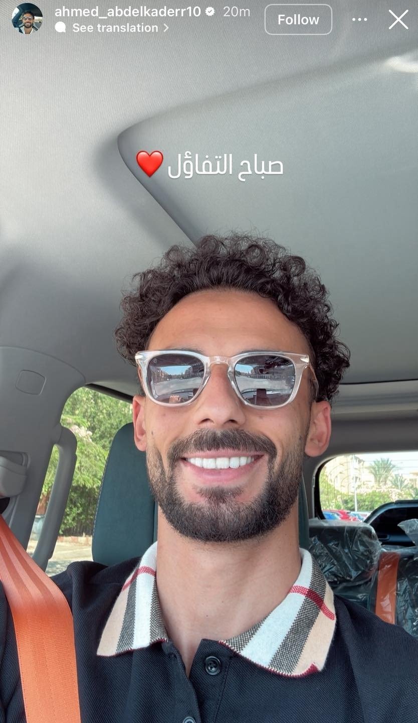 ونشر عبد القادر صورة عبر حسابه على إنستجرم علق عليه: “صباح التفاؤل”، وسيطرت عليه معالم الفرحة مع استعداده للمشاركة في مران الفريق الأحمر.