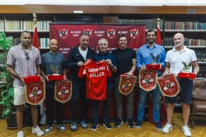 وأهدى الخطيب المدرب السويسري كولر وجهازه المعاون درع وعلم النادي متمنياً لهم التوفيق في الفترة القادمة.